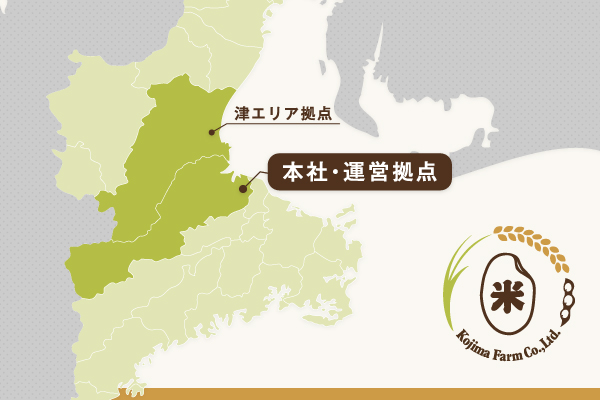 株式会社小島ファームは地域に根ざした農業法人として、豊かな大地を次の世代へ受け継ぐ責任を胸に、日々挑戦を続けています。2008年、実家の土地を使った小さな作付面積から始まりましたが、地域の皆さまの信頼をいただきながら経験を重ね、現在では三重県松阪市、津市を合わせ、約150ヘクタールの農地をお預かりするまでに成長しました。